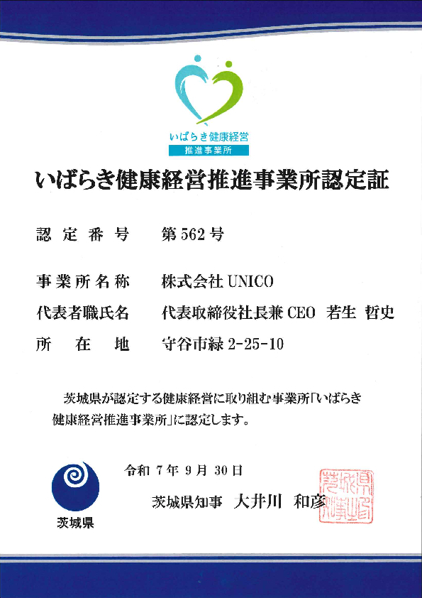 HOME ニュース いばらき健康経営推進... ニュース 2025/10/08 ニュース いばらき健康経営推進事業所認定 認定取得いたしました この度、弊社は 「いばらき健康経営推進事業所認定」を取得いたしました。 いばらき健康経営推進事業所認定制度について/茨城県 < PREV NEXT > < LIST >
